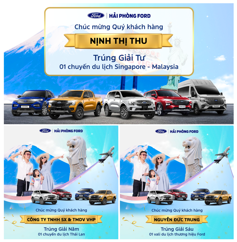 • Giải Sáu: Quý khách hàng Nguyễn Đức Trung nhận 01 vali du lịch thương hiệu Ford.