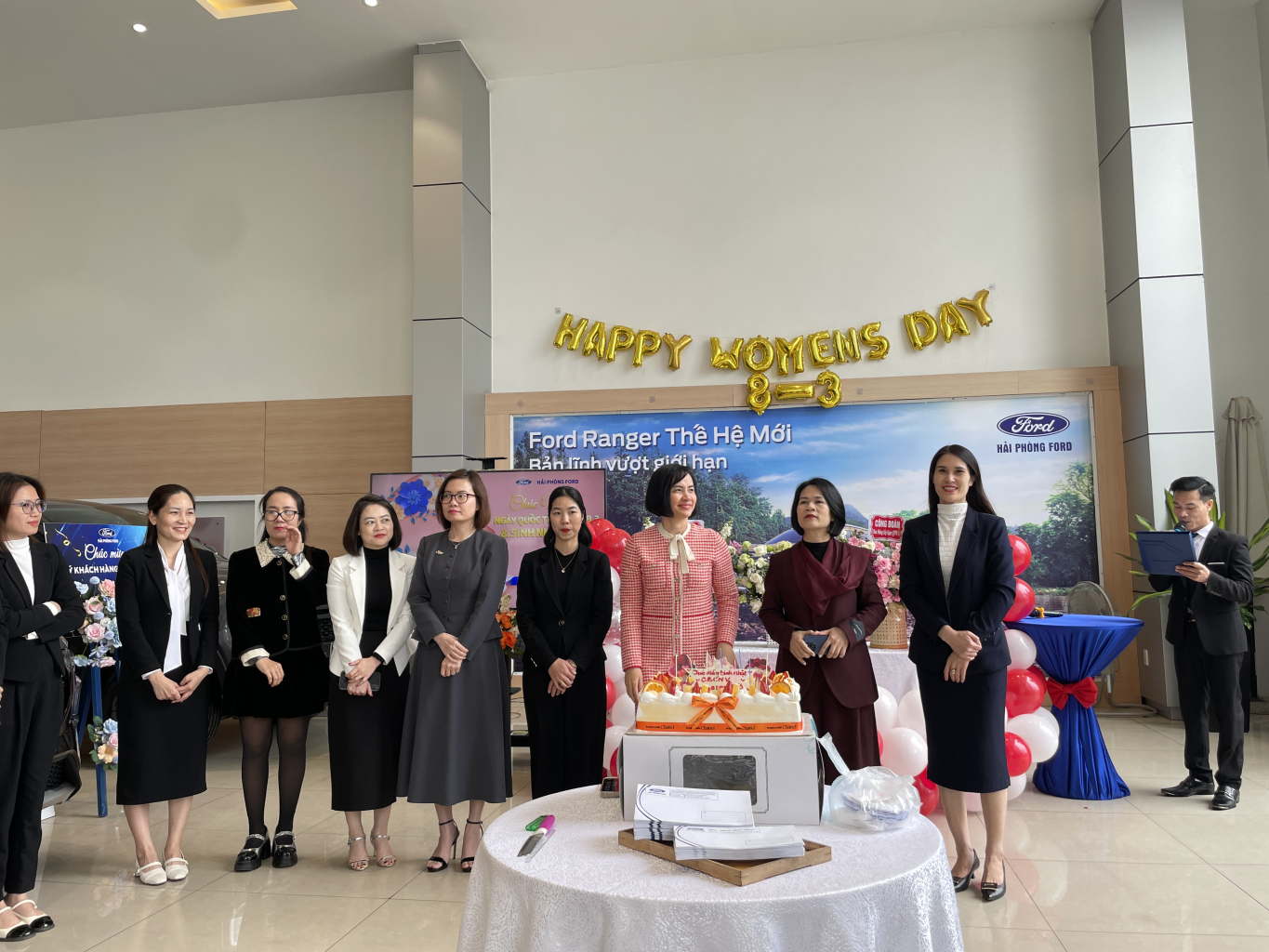 Bên cạnh việc chúc mừng Ngày Quốc Tế Phụ Nữ 8/3, Hải Phòng Ford cũng đồng tổ chức chúc mừng sinh nhật cho các cán bộ và nhân viên có ngày sinh trong tháng 3 này. Chúng tôi xin gửi lời chúc mừng sinh nhật đến các anh chị và mong rằng bước sang tuổi mới, các bạn sẽ đạt được nhiều thành tựu mới trong công việc và cuộc sống. Chúc các bạn luôn hạnh phúc và thành công trong mọi nỗ lực.