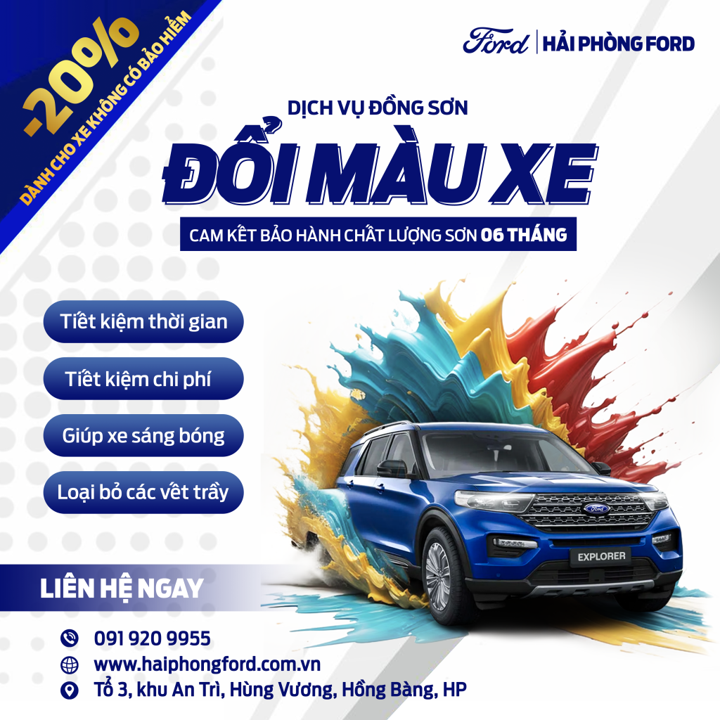 Sơn đổi màu xe ô tô không chỉ nâng cao tính thẩm mỹ mà còn giúp chiếc xe của bạn trở nên độc đáo và nổi bật. Hy vọng bài viết đã cung cấp cho bạn những thông tin hữu ích về quy trình cần thiết để thực hiện dịch vụ này. Để được tư vấn và báo giá sơn đổi màu ô tô, hãy liên hệ với Hải Phòng Ford qua số hotline 091 920 9955!